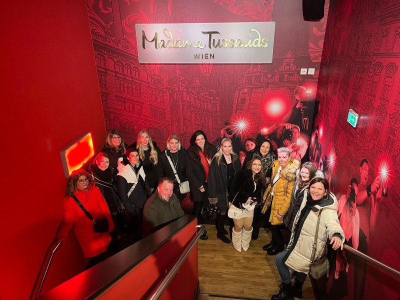 Unsere Feier begann mit einem herzlichen Empfang, wo wir uns auf den Abend einstimmen konnten. Danach ging es weiter zu einem ganz besonderen Erlebnis: Ein Besuch bei Madame Tussauds Wien, wo wir mit den Stars auf Tuchfühlung gingen und unvergessliche Fotos machten.